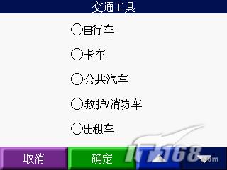 “交通工具”的设置其实就是在一定层面反映道路的属性。由于道路的宽窄、高度、交通限行等不同,允许通过的交通工具也就不同,“任我游300”在这点的确分得比较细,也在一定的程度上体现了其人性化。
